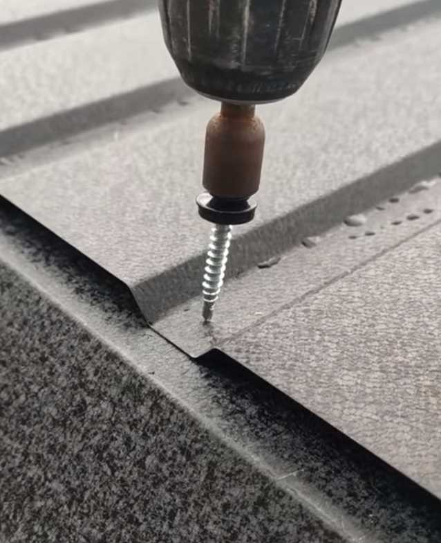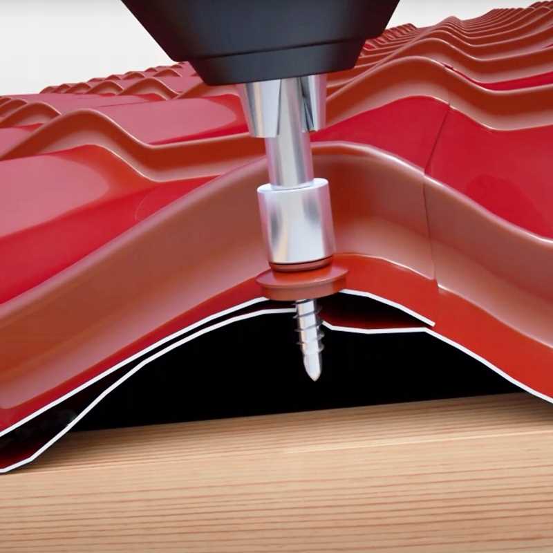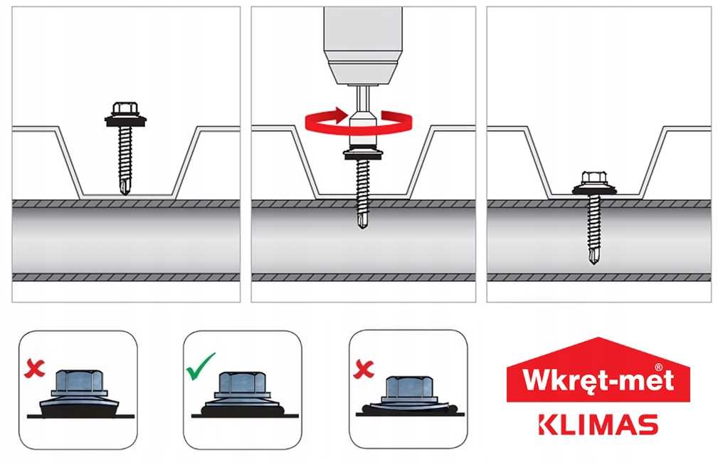 Montaż wkrętów FARMERSKICH jest niezwykle szybki i prosty. Szacunkowe zapotrzebowanie na wkręty wynosi od 6 do 9 sztuk na każdy metr kwadratowy blachy, co oznacza, że każde opakowanie 250 sztuk wkrętów wystarcza na montaż blachy na powierzchni około 35 m². Idealnie nadają się do: