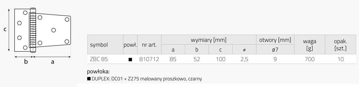 Samozamykacz drzwi zbc 85 85x52x100x2,5 mm (duplex) domax 1 sztuka