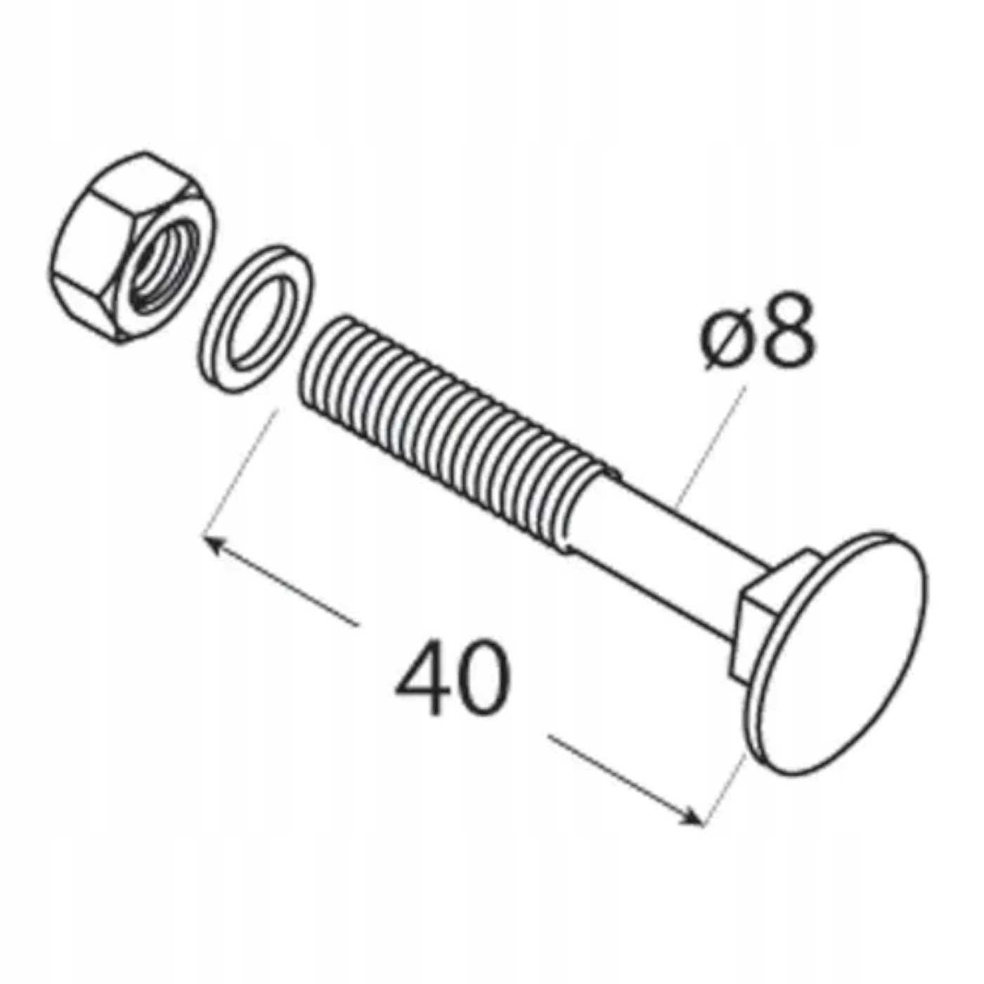 Śruba zamkowa o wymiarach 8x40 mm w eleganckim czarnym wykończeniu, wyposażona w nakrętkę. Idealna do zastosowań dekoracyjnych oraz konstrukcyjnych, gdzie liczy się zarówno funkcjonalność, jak i estetyka.
