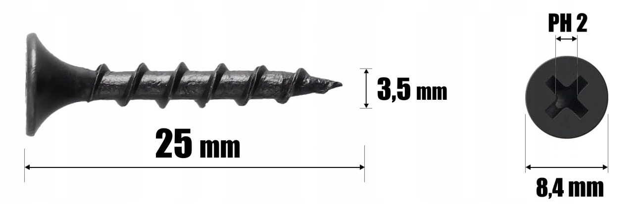 WKRĘTY DO DREWNA PŁYT GK CZARNE PH2 FOSFATOWANE 3,5x25 KLIMAS - 1000 szt