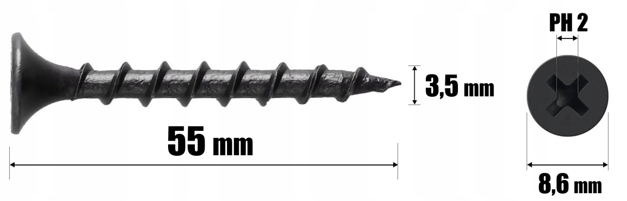 WKRĘTY DO DREWNA PŁYT GK CZARNE PH2 FOSFATOWANE 3,5x55 KLIMAS - 500 szt