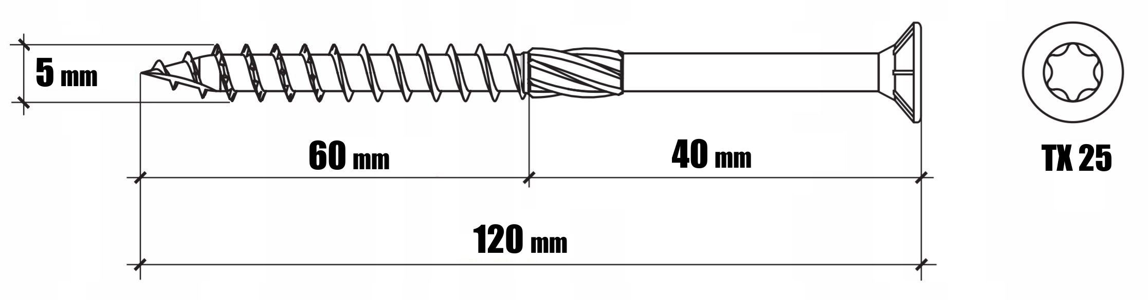 Wkręty do drewna ciesielskie stożkowe TORX TX stal 5x120mm Wkręt-Met 200szt