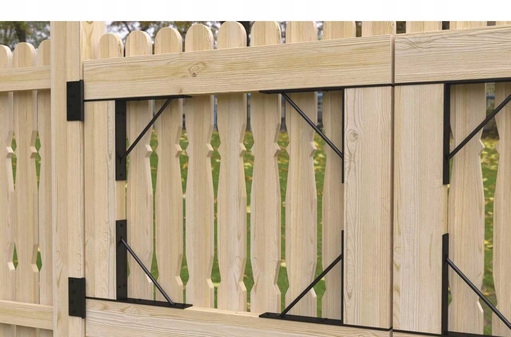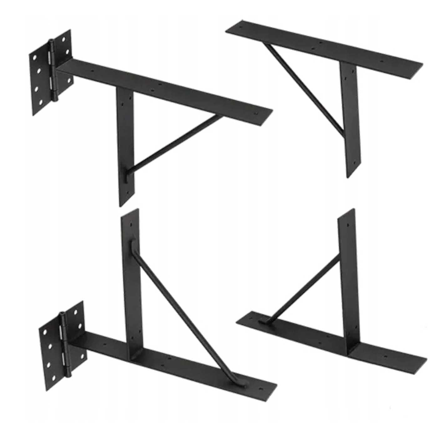 W skład czteroelementowego zestawu wchodzą: 2 standardowe wsporniki oraz 2 wsporniki z wbudowanymi zawiasami. Dzięki temu, montaż staje się niezwykle prosty – wystarczy przygotować odpowiednie drewniane belki i przykręcić je do całości za pomocą wkrętów.