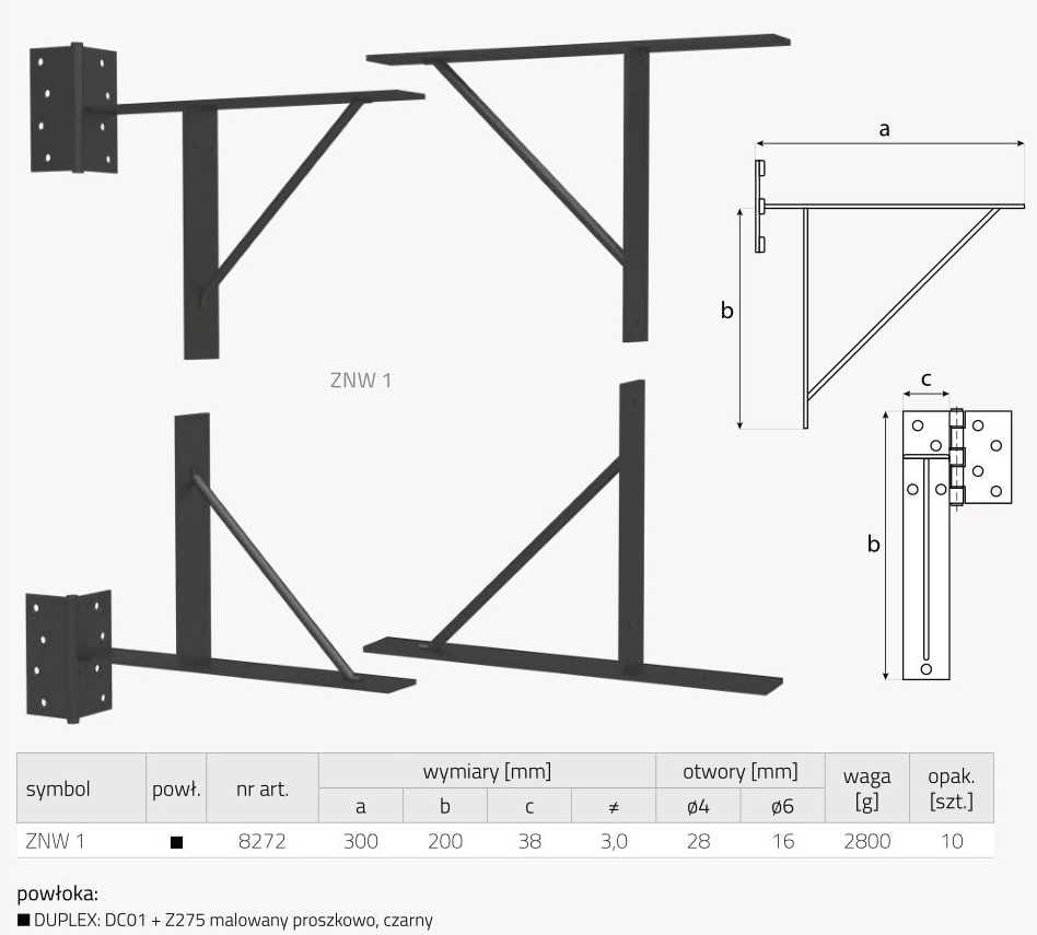 - W skład zestawu wchodzi: 2 zawiasy, 2 wsporniki